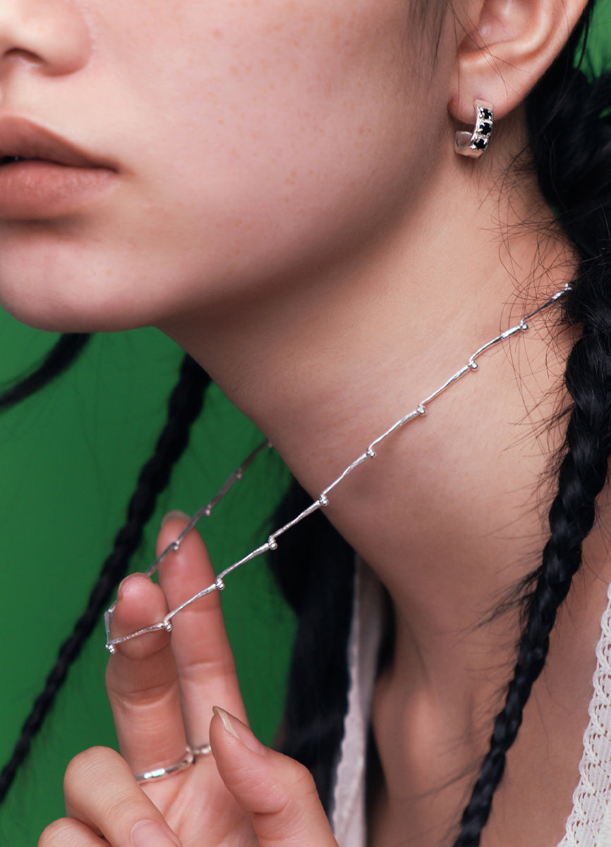 スウェイジルコニアフープピアス(CR.BK) Toii
