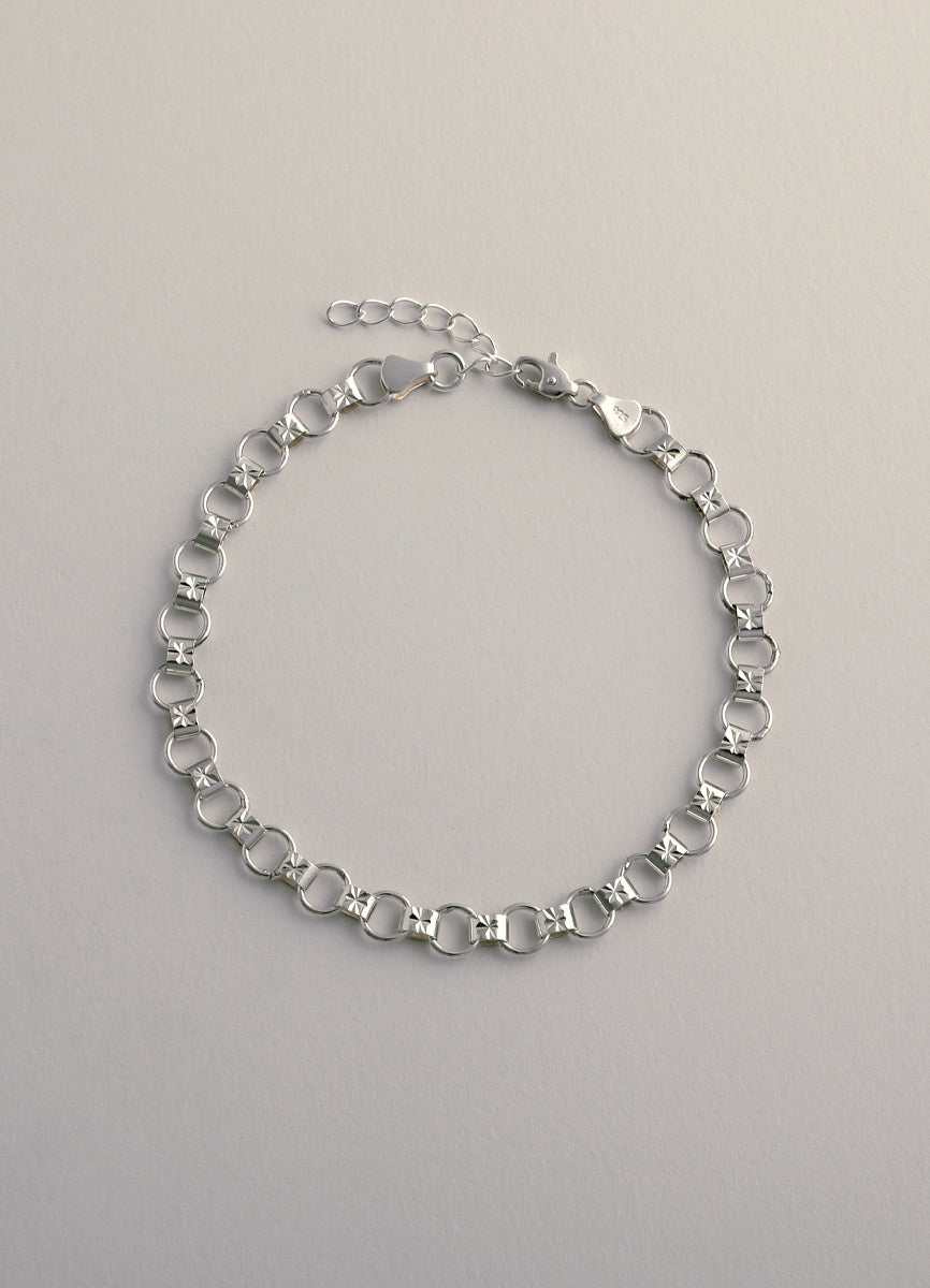 Silver925素材を使用した、プレートにアスタリスク(*)の刻印が入ったブレスレット。