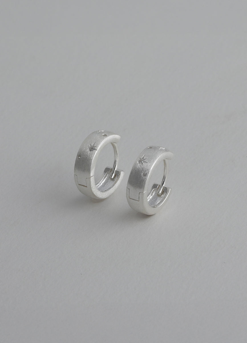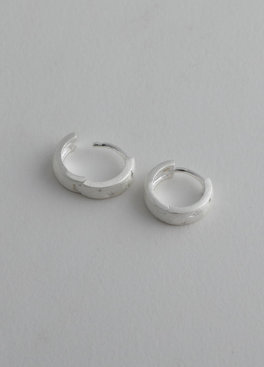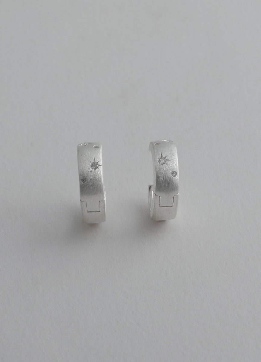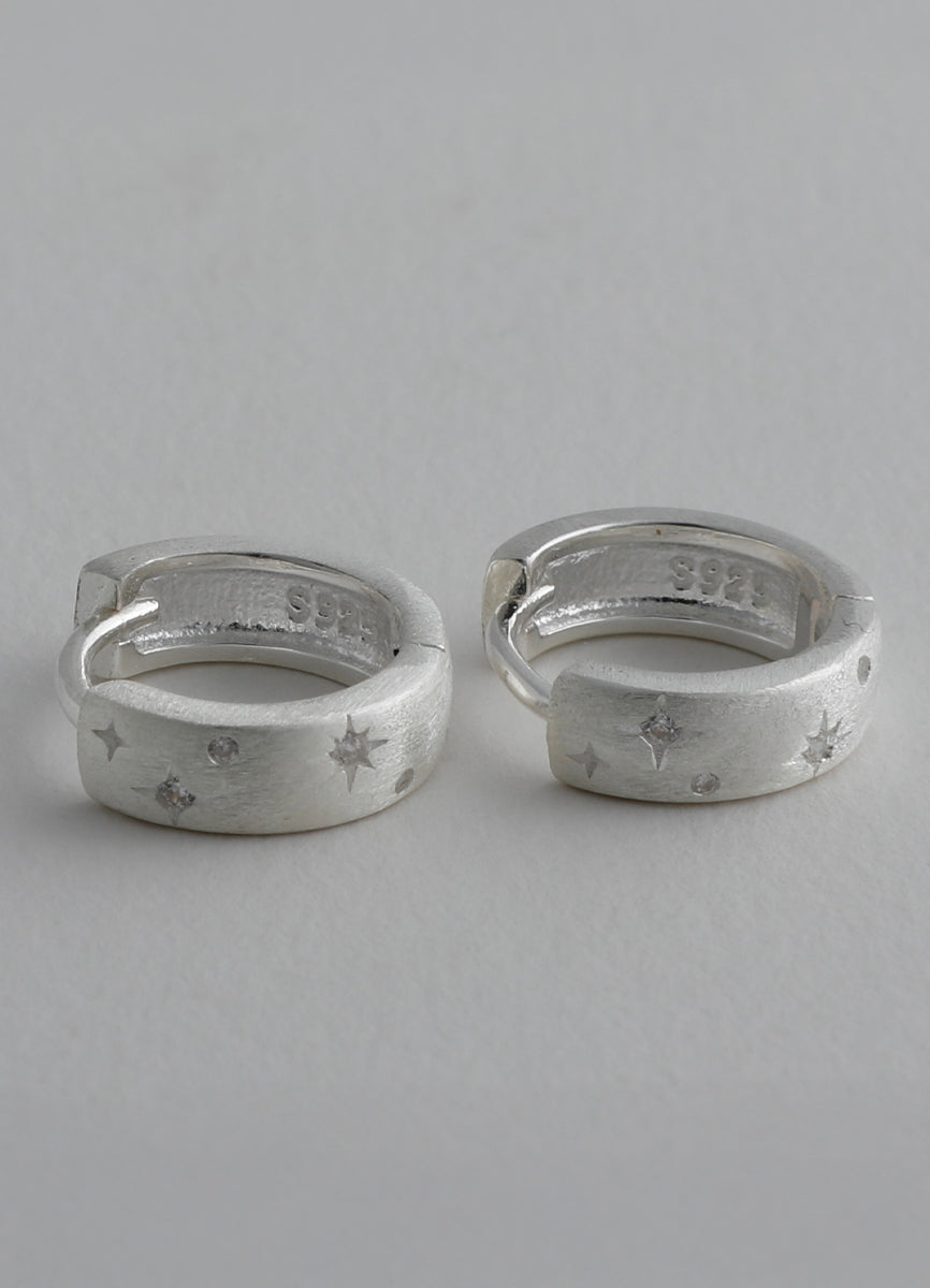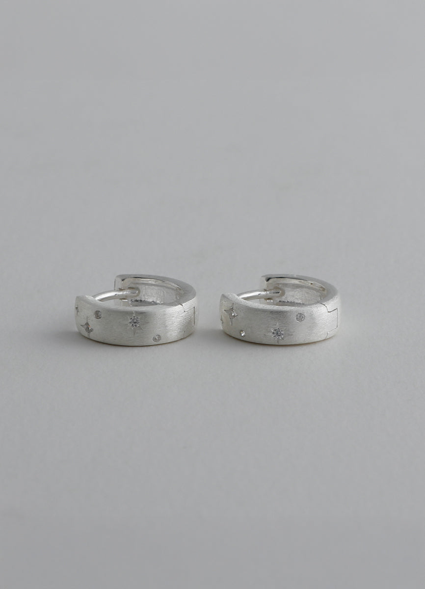 細やかな煌めきを放つジルコニアとヘアライン加工でつや感を抑え、お互いを惹き立てあうようなデザインのミニフープピアス。