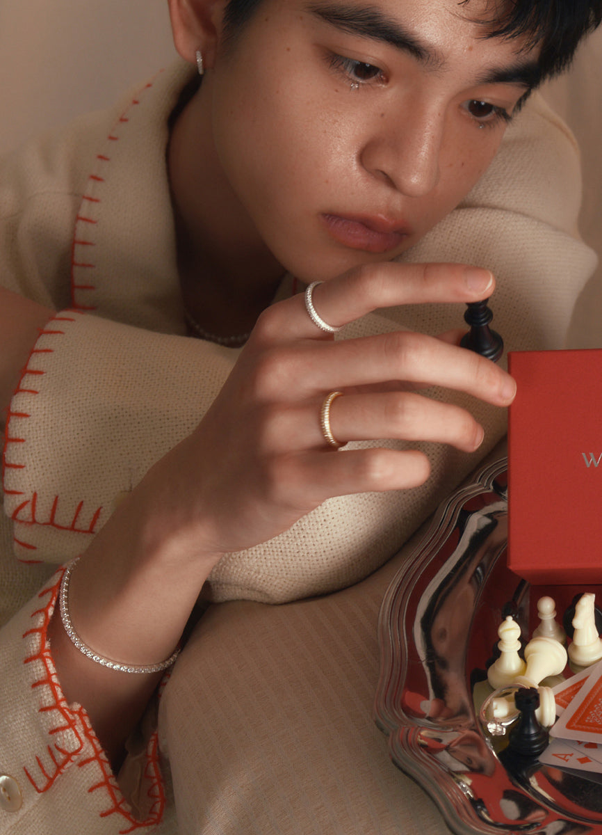 単体での着用はもちろん、チェーンブレスやバングル、同シリーズの華奢ブレスとの重ね付けで印象をアレンジすることも可能。