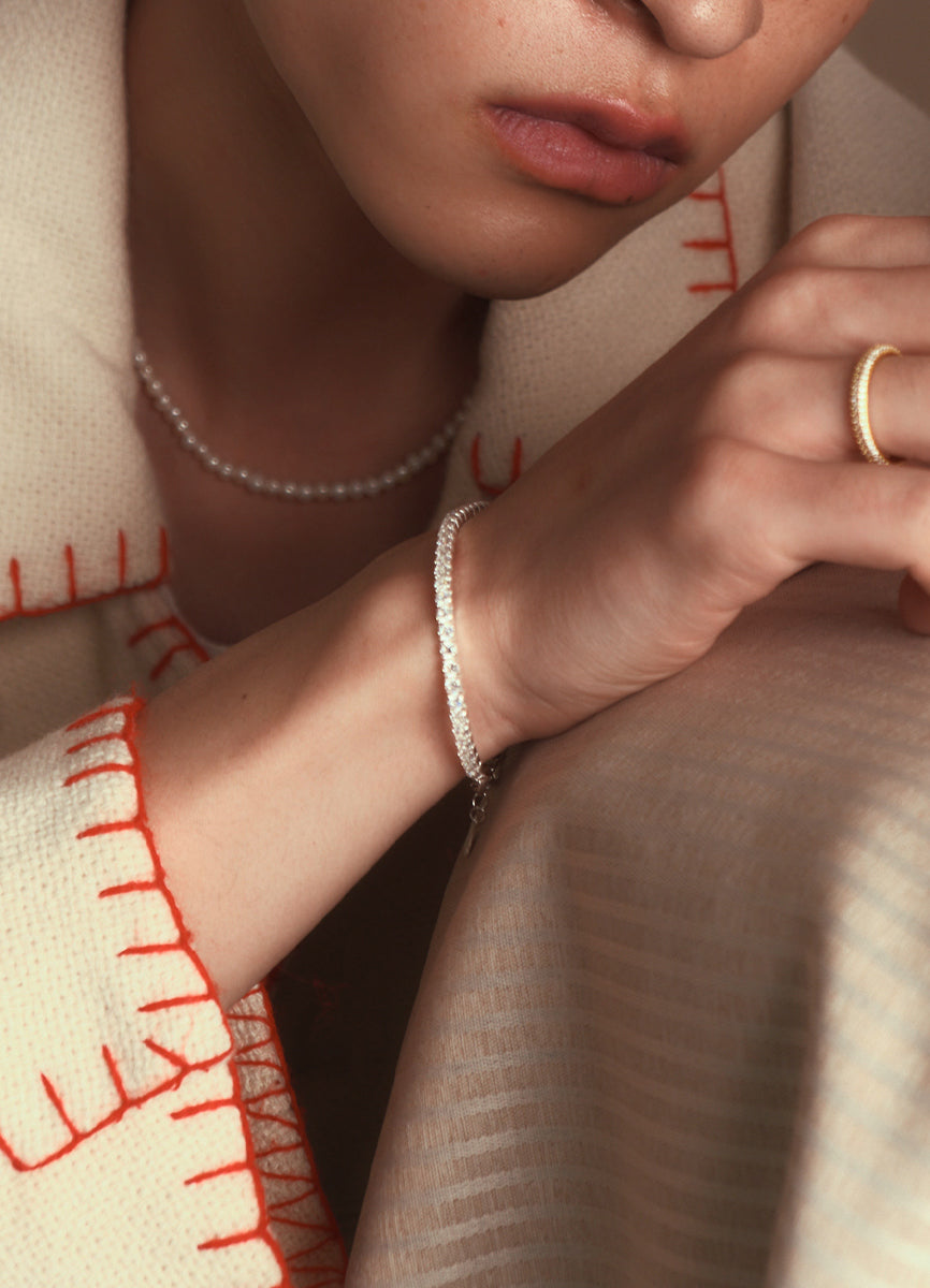 Silver925素材に大粒のジルコニアをあしらった、存在感のあるライン(テニス)ブレスレット。