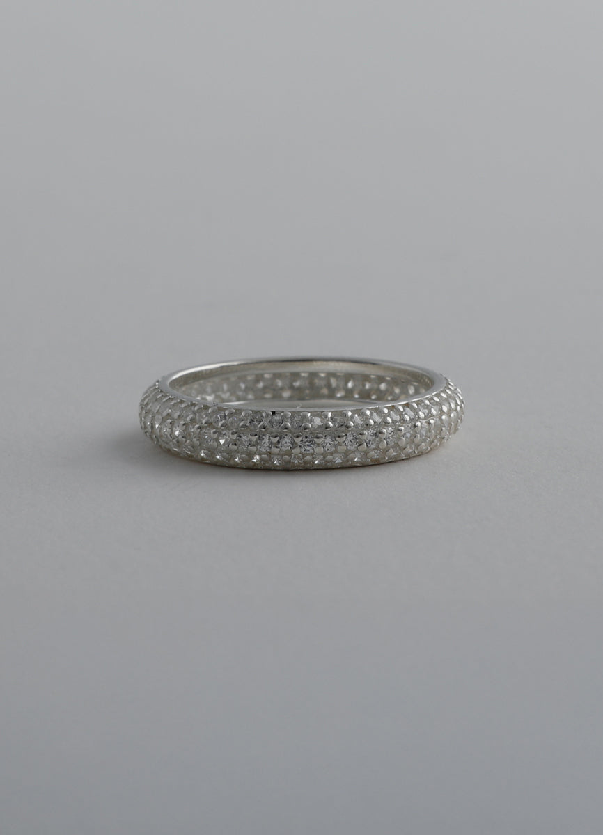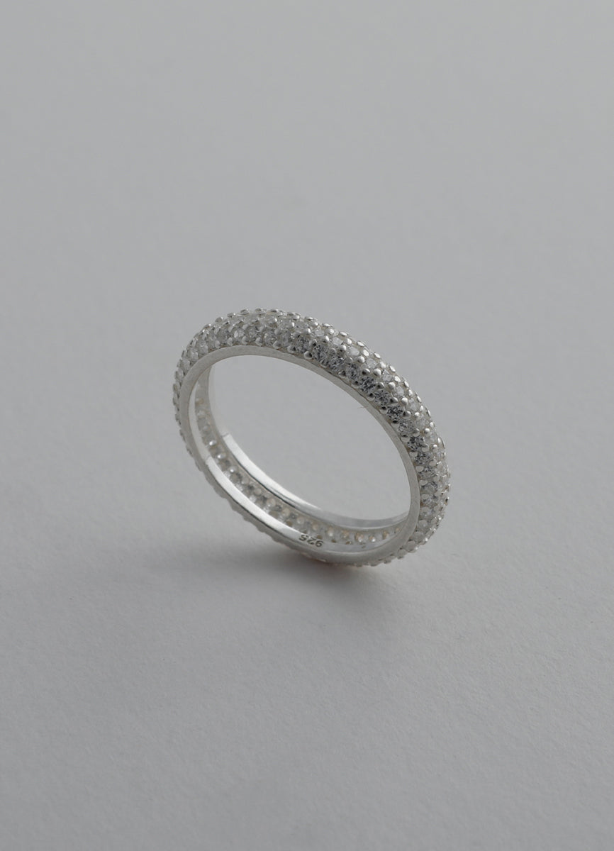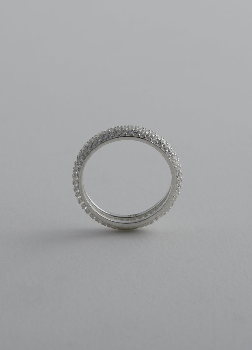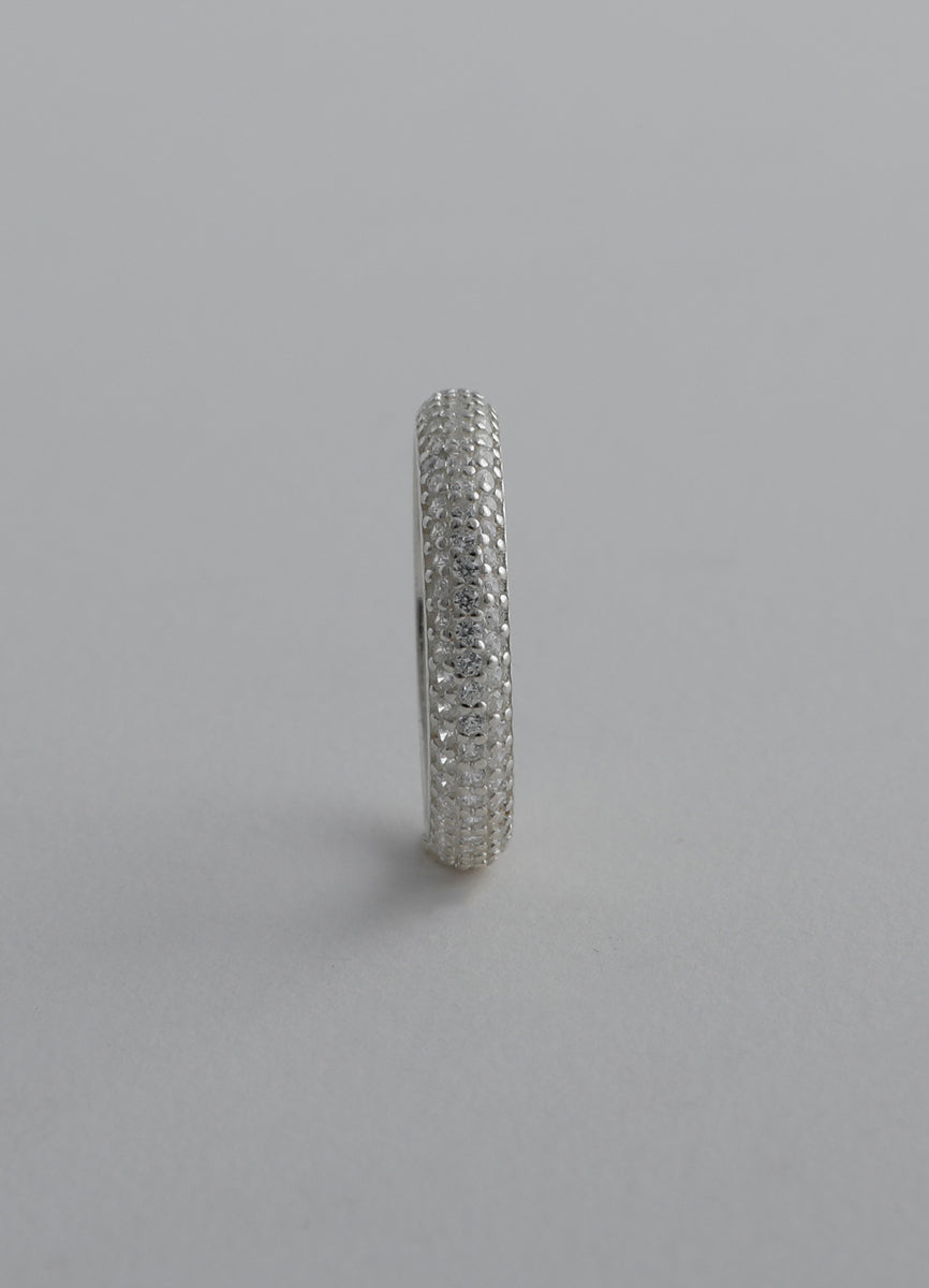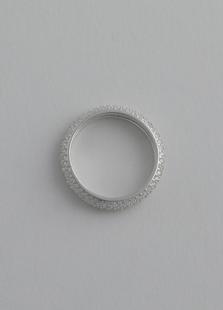 程よい太さのSilver925リングに細かなジルコニアを埋め込み、さり気ない輝きを放つシックなデザイン。