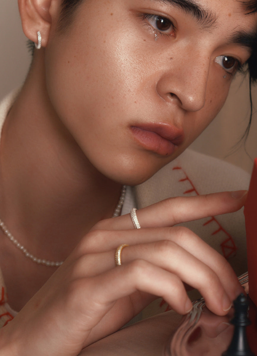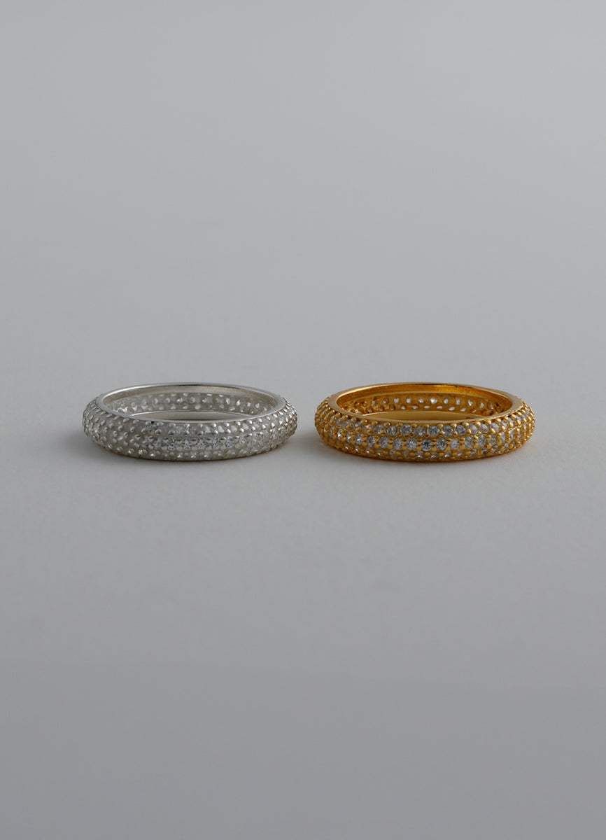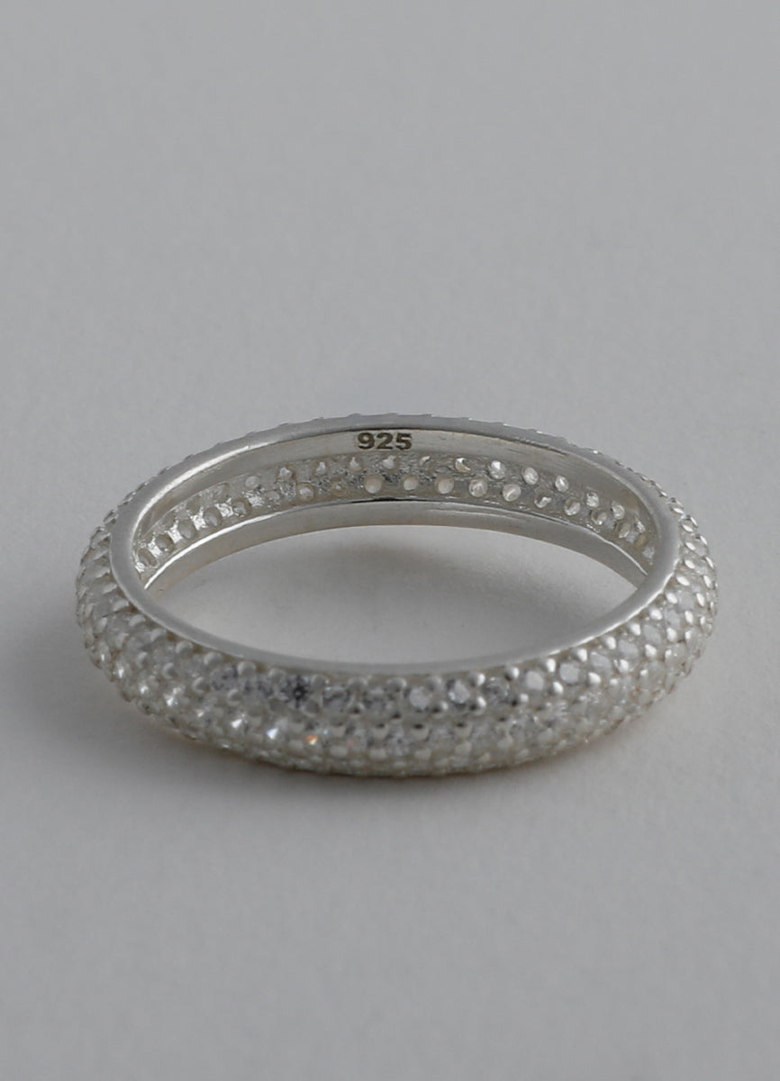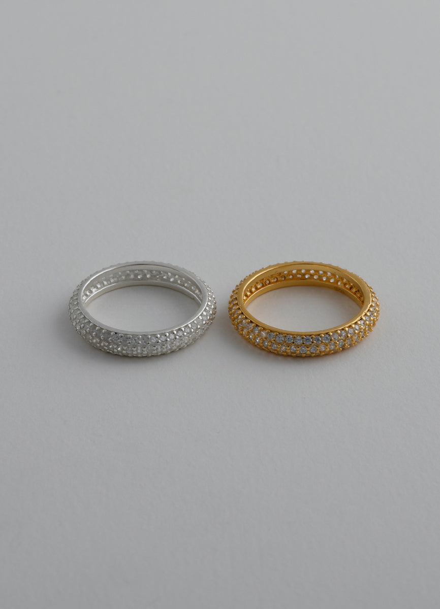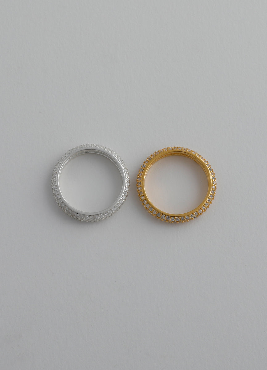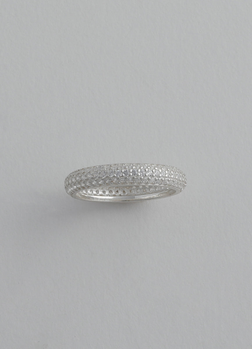 程よい太さのSilver925リングに細かなジルコニアを埋め込み、さり気ない輝きを放つシックなデザイン。