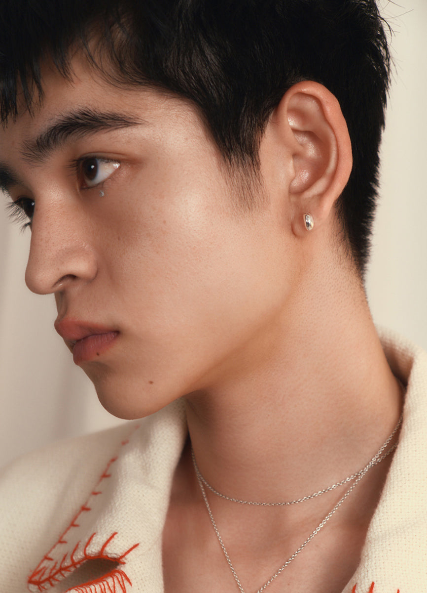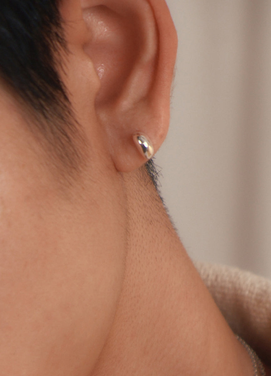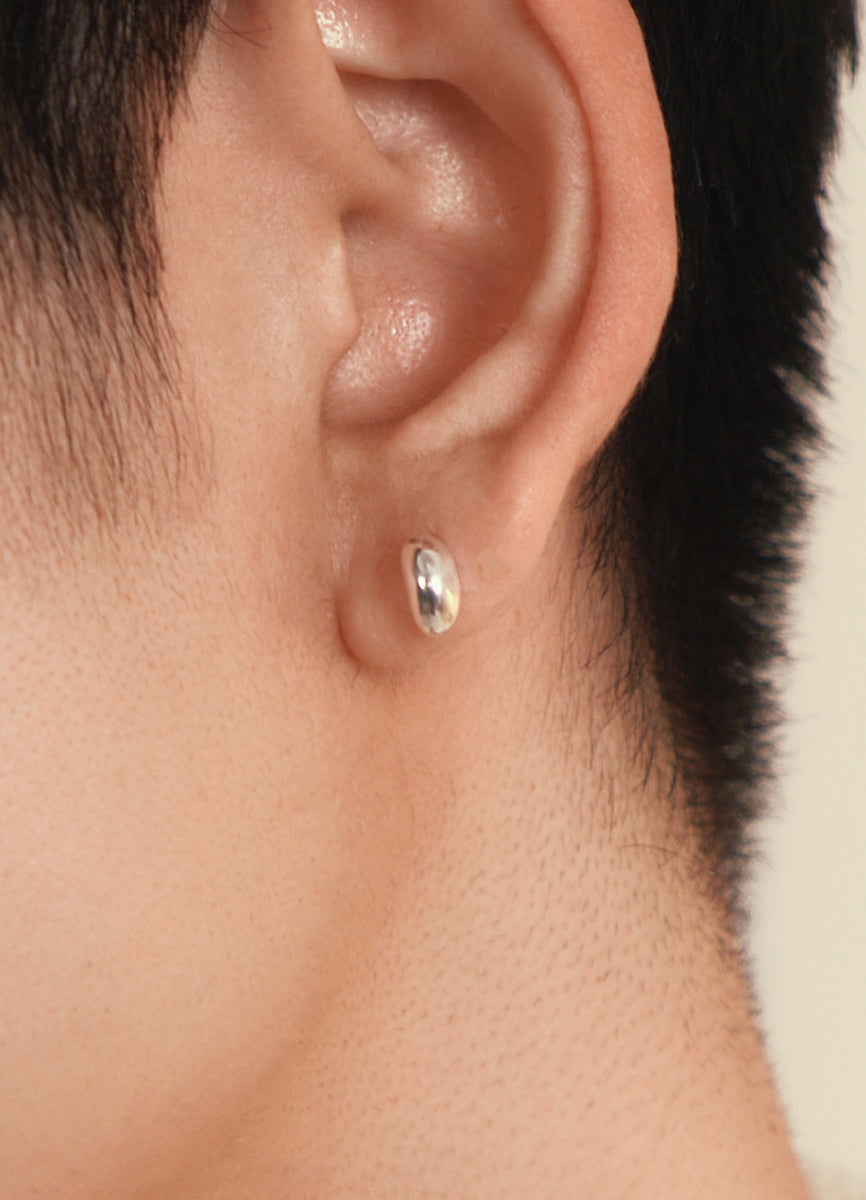 耳に沿うミニマムなサイズのシルバーの