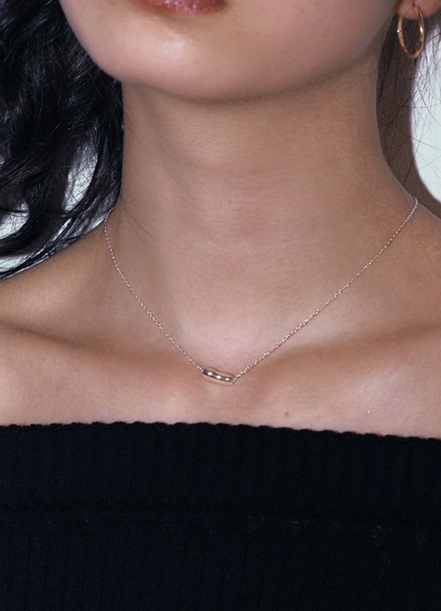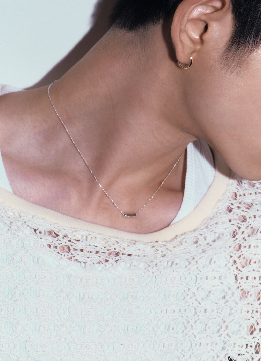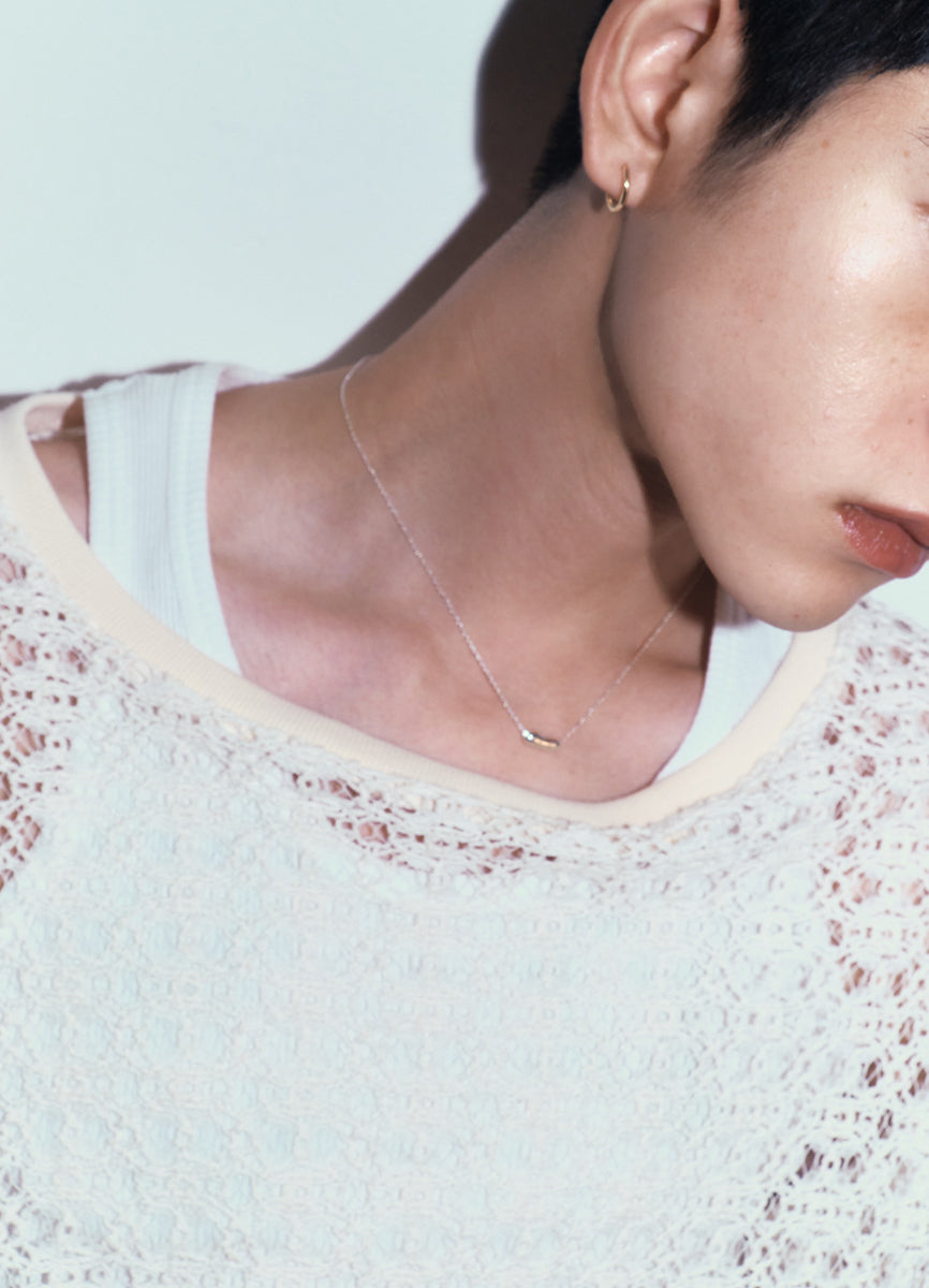 繊細で鎖骨に沿うような短さで着用できるチェーンネックレスに