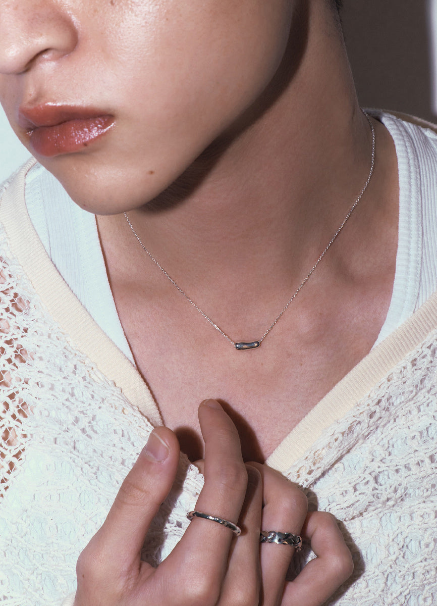 チョーカー・ネックレスなどと重ね付けでさらにスタイリングの幅が広がります。