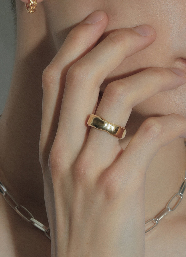 程よいボリュームと凹凸デザインがシンプルだけに収まらない印象に。