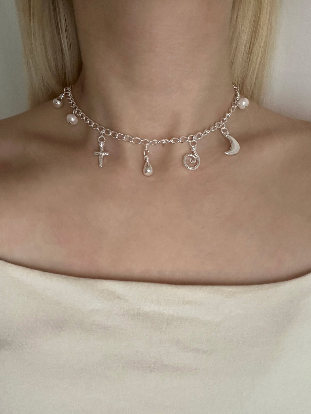 SALE ラウンドジェムストーンネックレス (SV) Toii