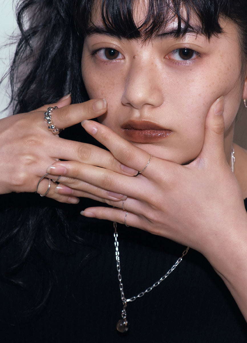 (※デザインに付属するパーツについてはその限りではございません)他の金属よりも傷がつきにくく丈夫な素材ですが、長くご愛用いただくためにもご使用後は柔らかい布で優しく拭いてください。