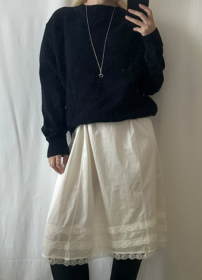 胸元にモチーフが位置するロングネックレスは、トップスの